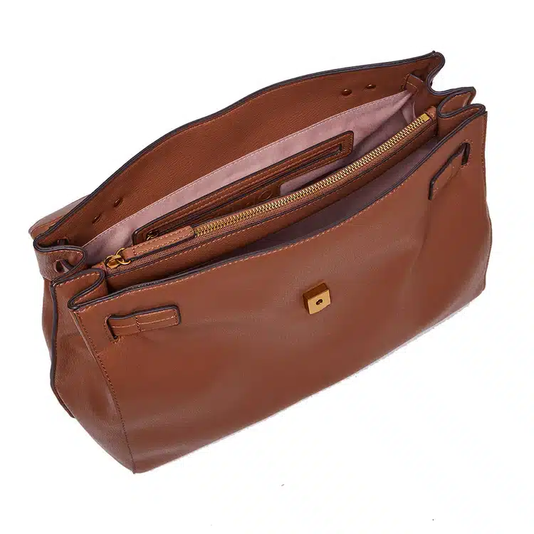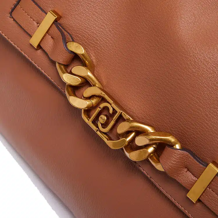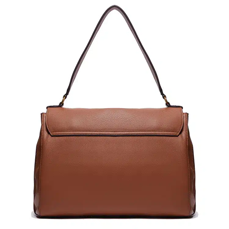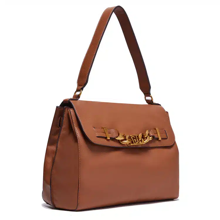 Shopping a cartella in ecopelle effetto bottalato comoda e capiente. Tre ampi scomparti chiusi con una patta con dettaglio catena.